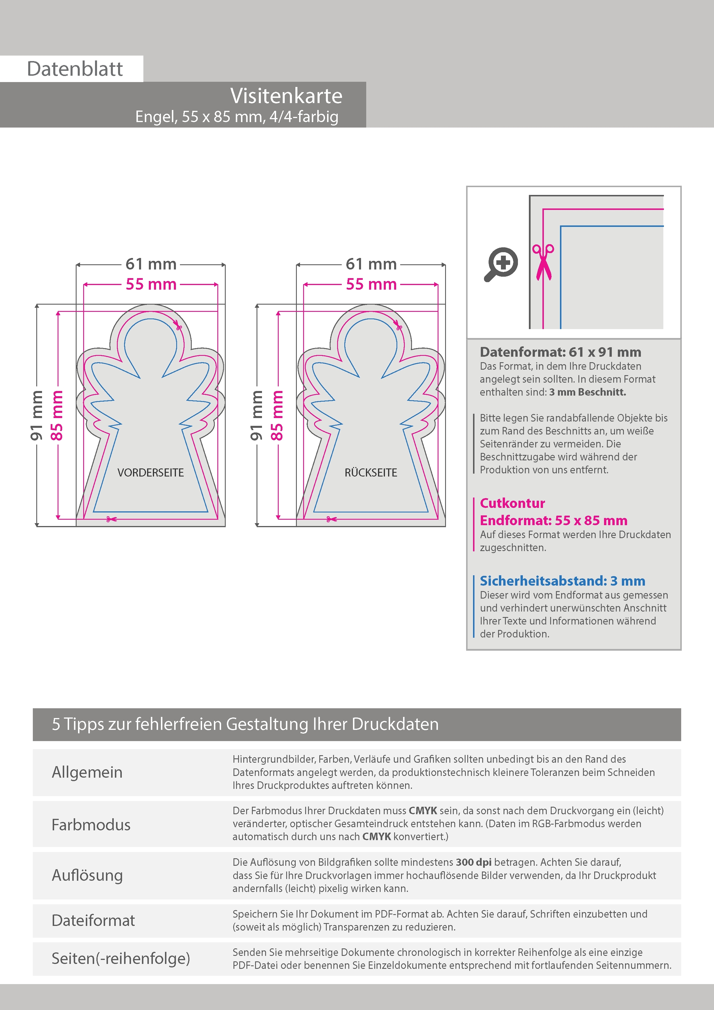 Visitenkarte Engel, 55 x 85 mm, 2-seitig, 4/4-farbig CMYK
